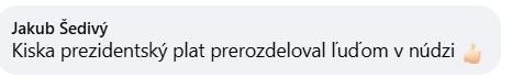 Pripomienka, že prezident Kiska svoj plat prerozdelil ľuďom v núdzi.