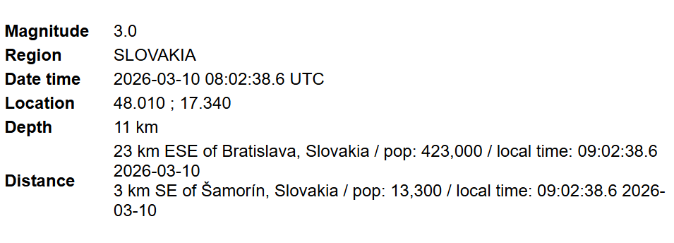 Pred približne dvoma týždňami zasiahlo región výraznejšie zemetrasenie pri Bratislave, ktorého epicentrum bolo v oblasti Šamorína. Otrasy prišli v sobotu popoludní krátko pred 13:45 a trvali niekoľko sekúnd.