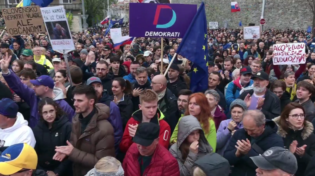 V Bratislave zazneli z pódia viaceré ostré vyjadrenia na adresu vládnej koalície. Podpredseda Demokratov Juraj Šeliga tvrdil, že kroky vlády vyvolávajú obavy medzi občanmi. „Vládni politici sa boja vlastných občanov,“ vyhlásil a pripomenul, že v minulých voľbách hlasovalo zo zahraničia poštou približne 59-tisíc ľudí.