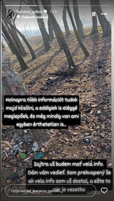 Vo štvrtok večer Boráros prostredníctvom Instagramu avizoval, že má k dispozícii viacero šokujúcich informácií, ktoré plánuje zverejniť. „Zajtra už budem mať veľa info. Dám vám vedieť. Som prekvapený, že koľko veľa info som už dostal, a ešte to nie je všetko,“ napísal. Či sa z jeho strany skutočne dozvieme niečo, čo zmení pohľad na celú udalosť, sa ukáže už čoskoro.